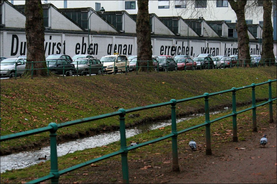 Erstaunliche Entdeckung in Düsseldorf: Jemand hat auf eine Fabrikmauer einen ungewöhnlichen Spruch gepinselt. Nicht einfach als Graffitti, sondern sehr sorgfältig. Wer immer sich diese Mühe gemacht hat: Lassen Sie sich von ihm ansprechen. Nehmen Sie den Spruch mit und erinnern Sie sich inmitten Ihres beruflichen Wandels immer wieder daran: „Du wirst eben genau das erreichen, woran keiner glaubt.“ – Entdeckt 2009 in der Karolingerstraße im Süden Düsseldorfs.